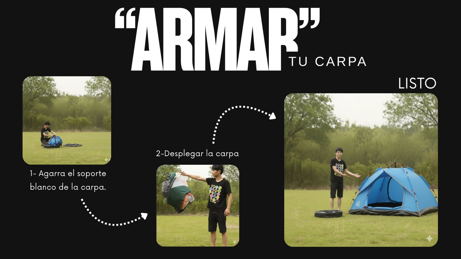 Porque entendemos que acampar es disfrutar, no luchar contra la carpa. Nuestra propuesta une practicidad, resistencia y diseño en un solo producto. A diferencia de otras carpas que requieren tiempo y esfuerzo para armar, la nuestra está lista en segundos y te ofrece un espacio amplio, ventilado y seguro. Además, nuestro servicio postventa te acompaña en todo momento, porque no solo vendemos carpas: ofrecemos experiencias al aire libre sin estrés.
